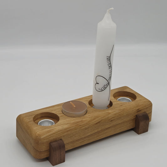Teelichthalter & Stabkerzenhalter Holz Eiche mit Nussbaum-Füßen – Deko für gemütliche Atmosphäre, handgefertigt
