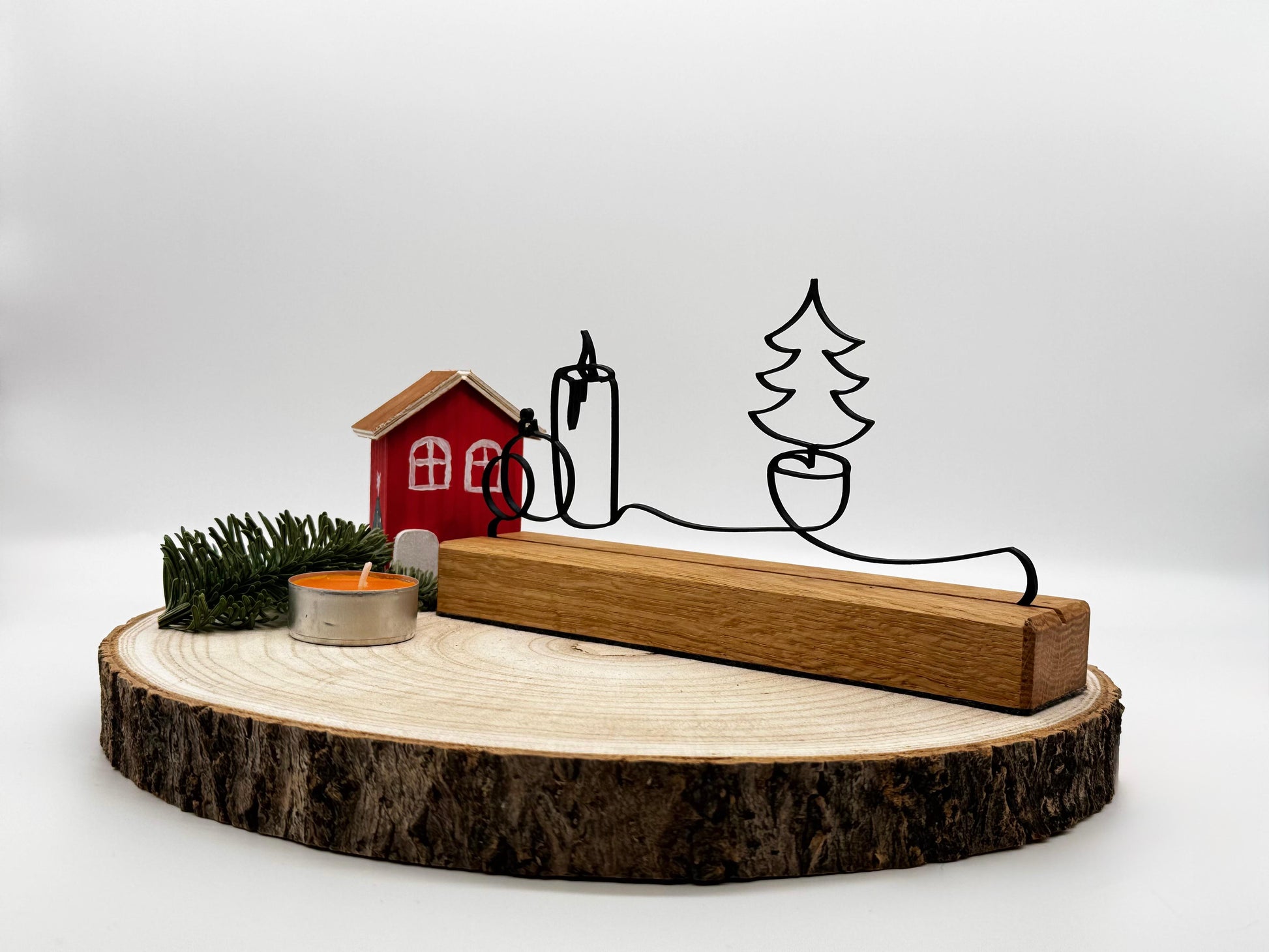 Der massiv gefertigte Sockel aus geölter Eiche bringt natürliche Wärme, während die schwarze Silhouette aus Kerze, Weihnachtskugel und stilisiertem Tannenbaum einen modernen und zugleich festlichen Akzent setzt. Durch das schlichte Design fügt sich das Deko-Element harmonisch in verschiedenste Wohnstile ein – ob skandinavisch, klassisch, modern oder minimalistisch.